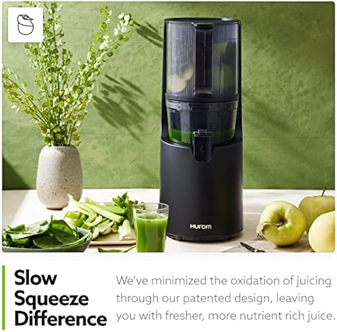 Hurom H-200 Easy Clean Electronic Juicer Machine (Silver) - Self Feeding Slow Juicer w Big Mouth Hopper to Fit Whole Fruits & Vegetables - Healthy Living - Rinse Clean No Scrub BPA Free Easy Assembly