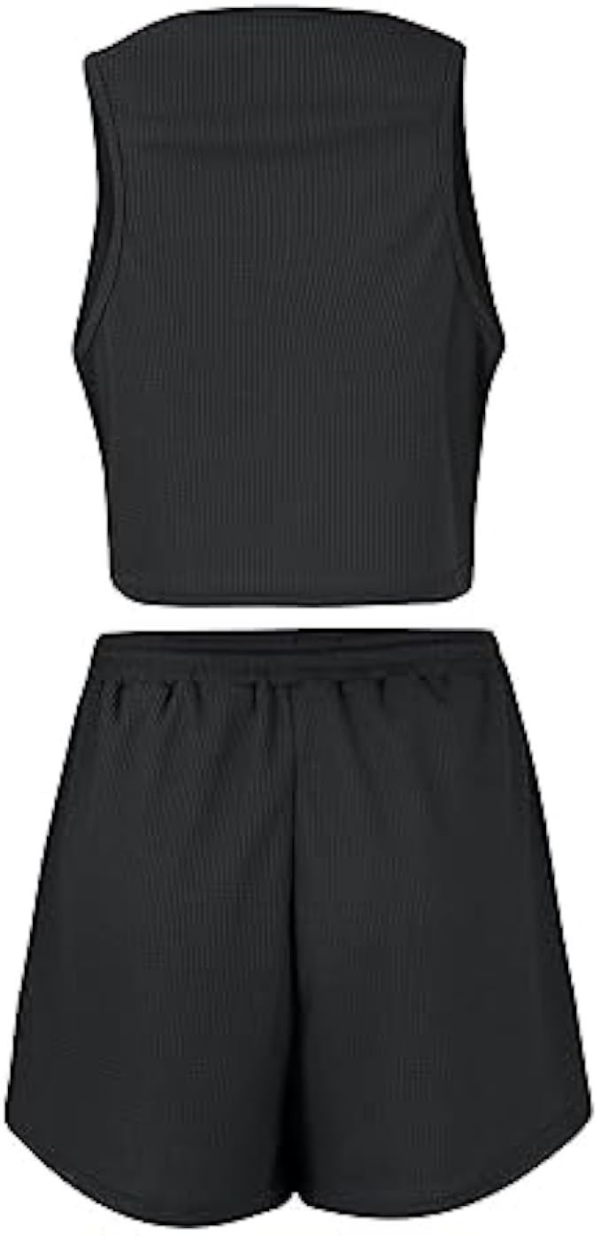 • Knit soft workout sets for women 2 piece,sleeveless round neck crop top,matching high waisted loose athletic shorts with two sides pockets,casual two piece outfits for women dressy ,it's the best choice for summer outfits.
