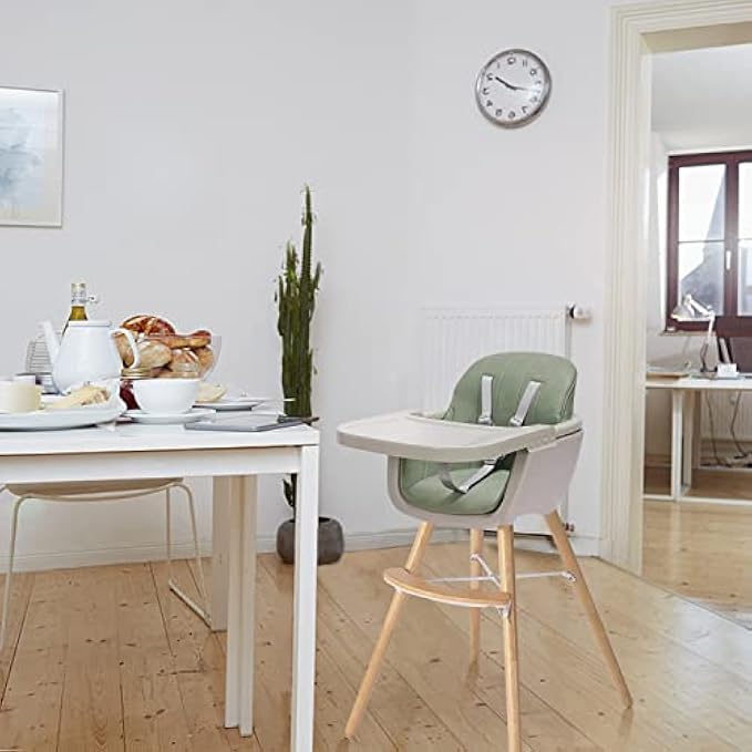 Foho Baby High Chair, Perfect 3 in 1 Convertible Wooden High Chair with Cushion, Removable Tray, and Adjustable Legs for Baby & Toddler (Green)