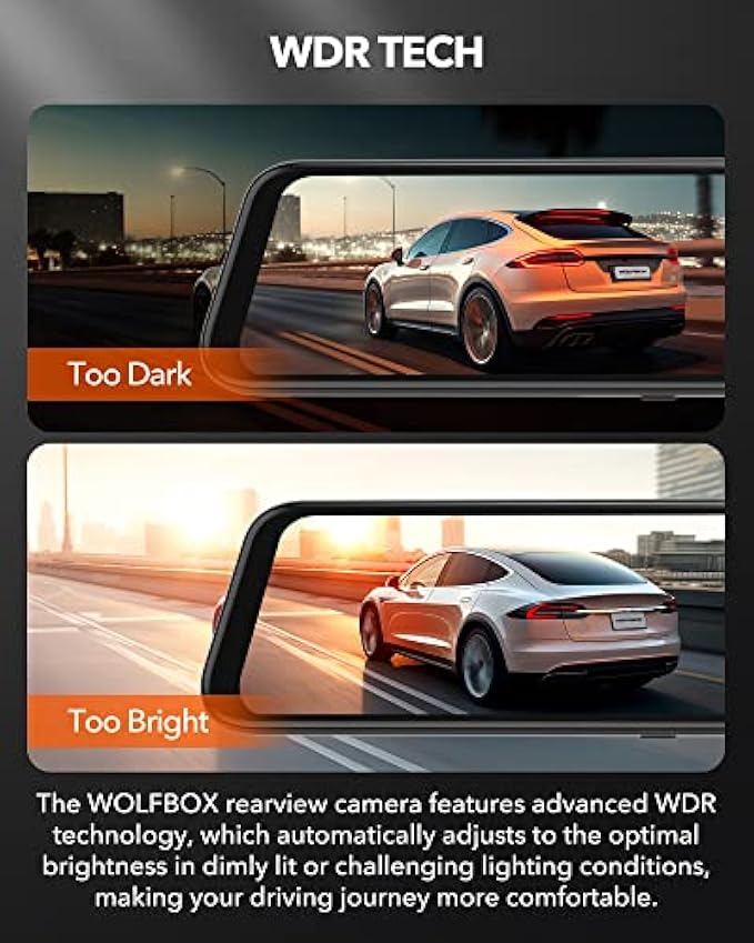 • 【1 YEAR WARRANTY & CUSTOMER SERVICES】WOLFBOX backup camera mirror comes with a 12-month warranty, software upgrades, and 24/7 customer service. During this period, we will resolve any issues related to the product, installation, or usage for you. Please do not hesitate to contact us, as we typically respond to messages within 12 hours.