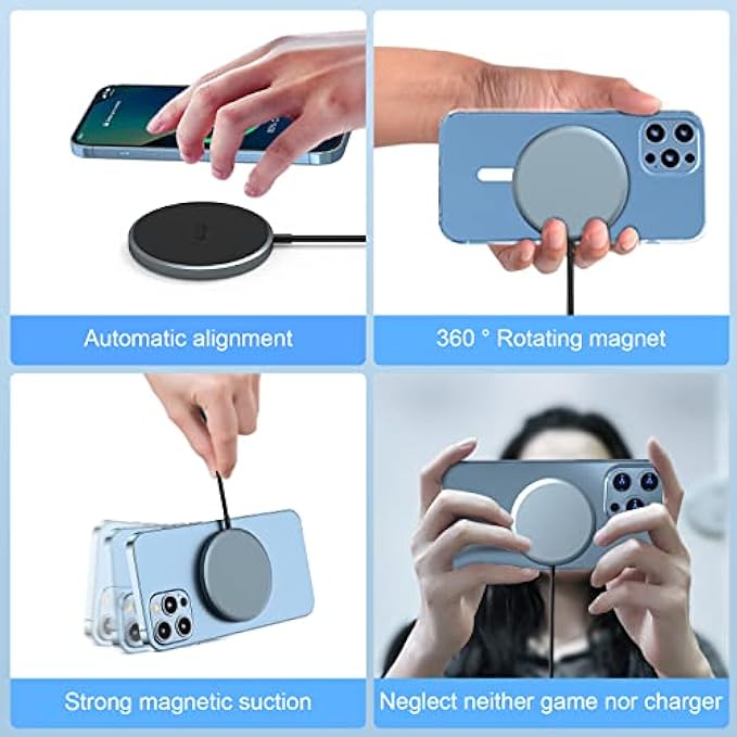 • 【Specifically for iPhone 14/13/12 Series】The magnetic charging feature makes the mag safe charger perfectly aligned with your phone and firmly attached. Up to 15W secure mag. safe wireless charging pads are perfectly compatible with iPhone 14, iPhone 14 Pro, iPhone 14 Plus, iPhone 14 Pro Max, iPhone 13, 13 Pro, 13 Pro Max, 13 mini, iPhone 12, 12 Pro, 12 Pro Max, 12 mini. (Note: Regular cases are not supported, as they can weaken the magnetic adsorption.) And with models of AirPods Pro /3 & 2 with a wireless charging case. The iPhone 8 through iPhone 11 models lack built-in magnetic functionality and require a mag safe phone case to enable magnetic adsorption.