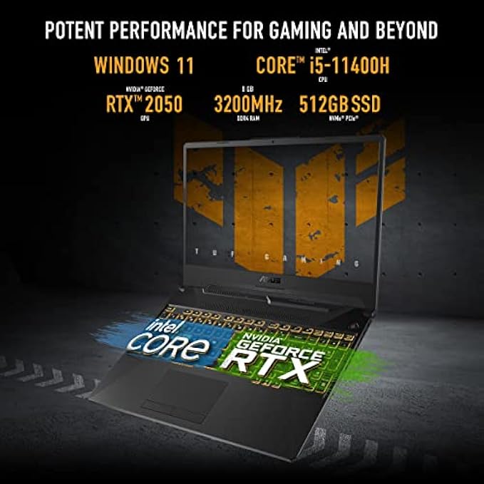 ASUS TUF Gaming F15 Gaming Laptop, 15.6” 144Hz FHD Display, Intel Core i5-11400H Processor, GeForce RTX 2050, 8GB DDR4 RAM, 512GB PCIe SSD Gen 3, Wi-Fi 6, Windows 11, FX506HF-ES51