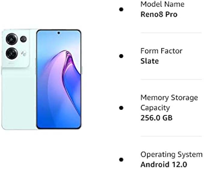 OPPO Reno8 Pro 5G Dual 256GB 12GB RAM Factory Unlocked (GSM Only | No CDMA - not Compatible with Verizon/Sprint) - Green