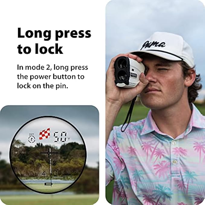 • Measuring range from 5 to 650 yards, with +/- 1m high accuracy and 6x magnification. The flagpole locking function supports a distance up to 150 yards (Flagpole only) and 250 yards (Aim the flag when it's unfolded). Our rangefinder can meet most user’s needs