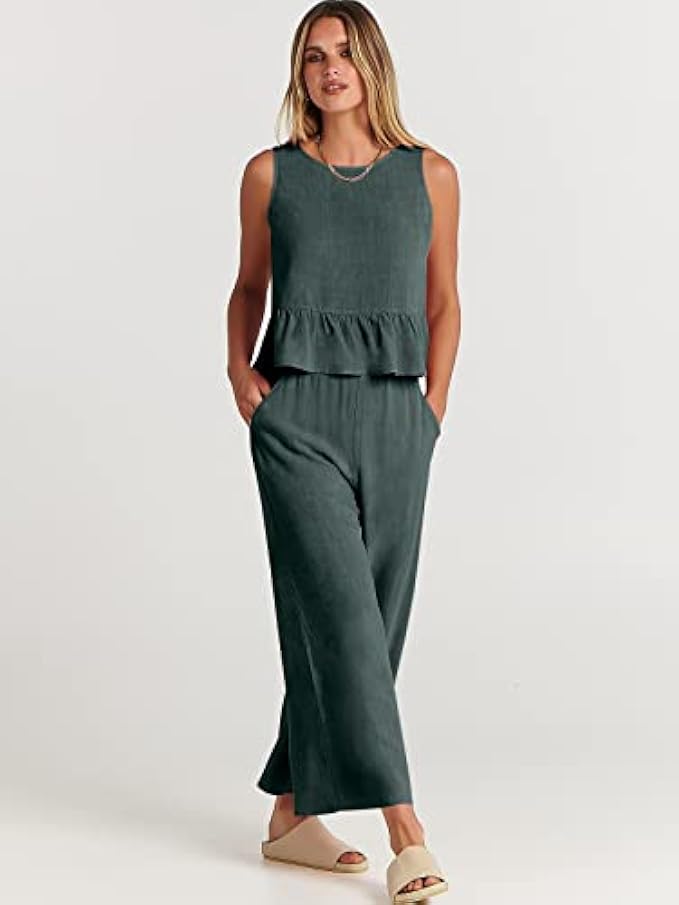• Chic and stylish - Look stylish and trendy in our cute summer outfits featuring a round neck crop top and high waist wide leg pants with a cool ruffle hem.