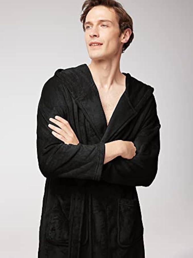 SIORO Mens Fleece Hooded Robe,Super Soft Plush Bathrobes with Pocket Fuzzy Winter Nightgown for Spa and House,M-XXL