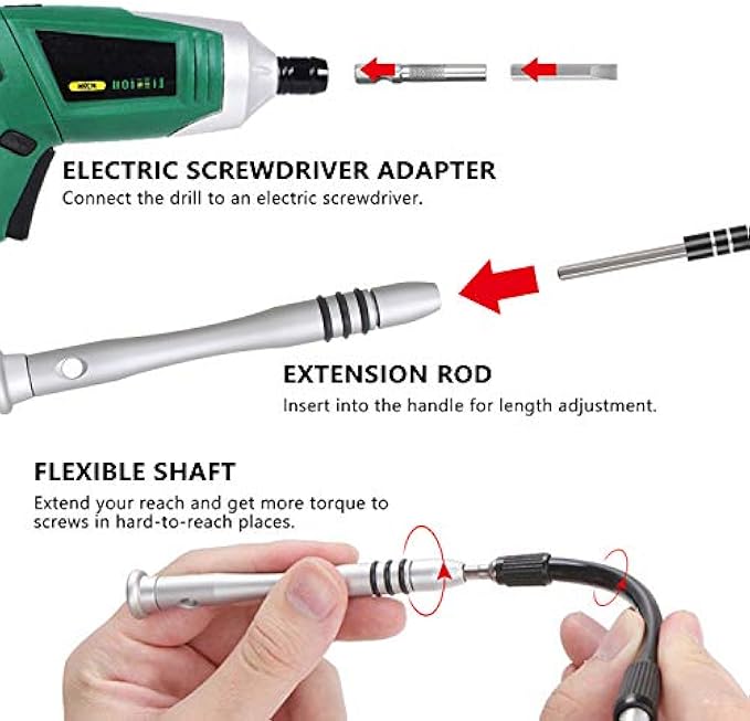 • Flexible Shaft : A flexible shaft is included, which is great for stereo work as well as other large electronics where the screws are not on the surface.