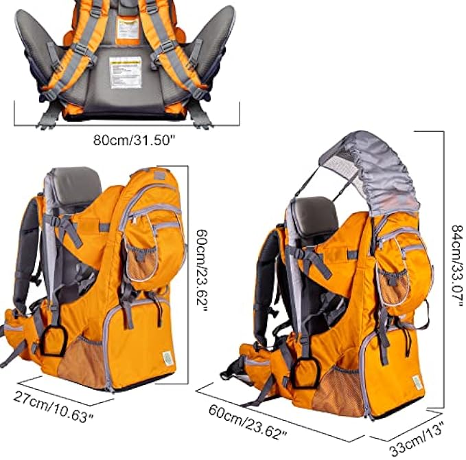 • ★【HIKING AND WALKING BABY CARRIER】Our baby backpack carrier is made from premium hiking materials that will stand the test of time. The high quality Backpack Child Carrier is made of strong but lightweight metal frame and 600d oxford cloth, It is approved by American Society of Testing Materials (ASTM) , it can withstand the elements and daily use especially for walking, hiking or even camping.