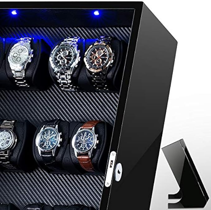 • ⌚SILENT MOTOR INSIDE LUXURY WATCHES WINDING DISPLAY CASE FOR 12 AUTOMATIC WATCHES: Japanese mabuchi motor was built inside watch winder storage box, is extremely quiet and long lasting, running with no noise; Japanese mabuchi motor can effectively reduce noise as low as 5-8 db, run quietly and safe, having no effect on your daily life.
