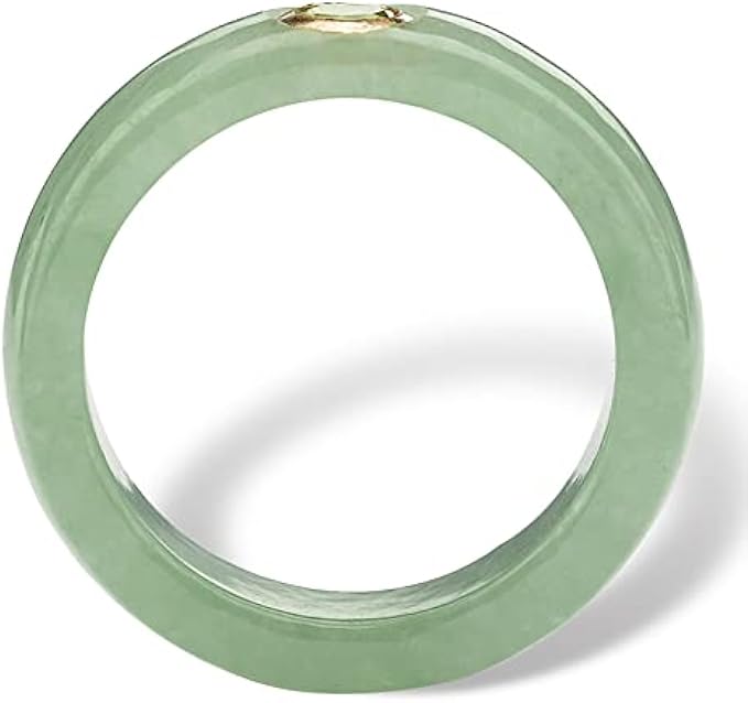 PalmBeach Jewelry 10K Yellow Gold Round Genuine Black or Red or Green Jade With Genuine White Topaz or Garnet or Peridot Accent Bezel Set Ring