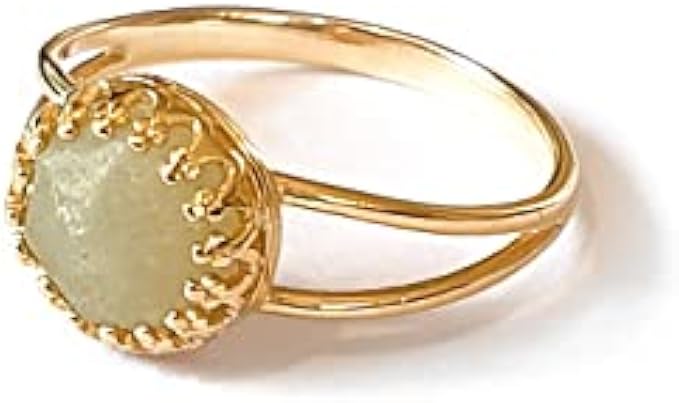 • * Lemon Jade Ring Natural Stone Gold Band