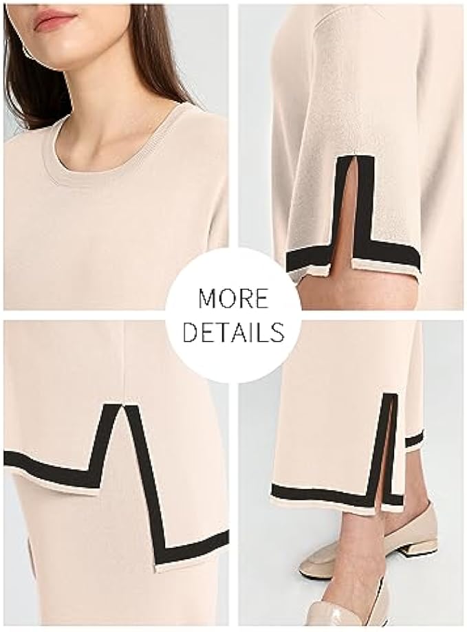 • Two Piece Outfits: This outfits feature with short sleeve knit sweater tops and elastic high waist wide leg pants, side split on sleeves and trouser legs, making this 2 piece knit sets more unique.