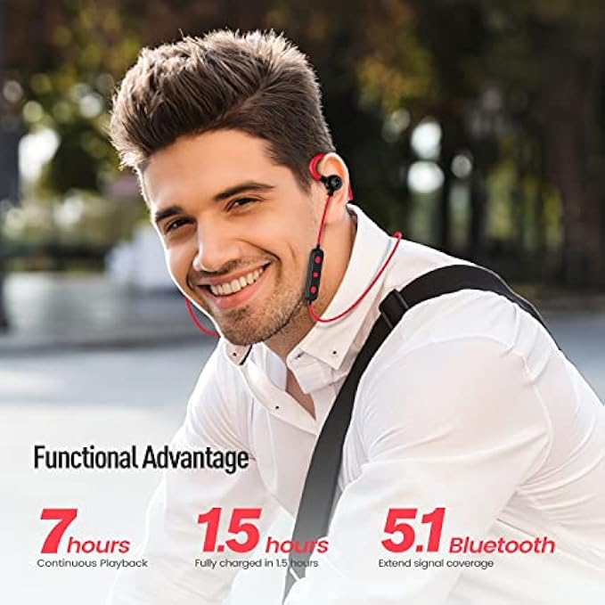 • IPX5 Waterproof and Magnetic Design: Certified IPX5 waterproof, our sports headphones bluetooth are resistant to sweat, dust and moisture. and it is not afraid of sweat attack even if it is used in severe sports. our in-ear headphones Built-in Magnet design makes it easy to carry everywhere without worry and will never fall out.