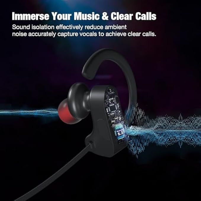 • 【IPX7 Waterproof Headphones】 Adopting highly sealed shell + nano-coating waterproof technology, this headphones waterproof performance reaches IPX7 waterproof standard, and it is not afraid of sweat attack even if it is used in severe sports. Great for running, hiking, cycling, fitness, yoga, travel, gym etc.