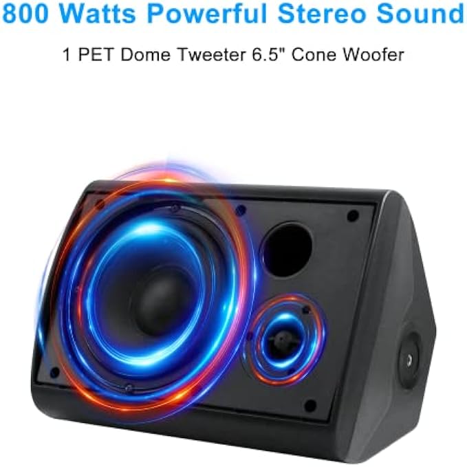 • 800 WATT POWER: The high powered 2-way full range indoor outdoor speakers wired waterproof has a maximum power output of 800 watt peak power / 200 watt RMS at 6 ohms so you can play your favorite tracks as loud as you want and with style