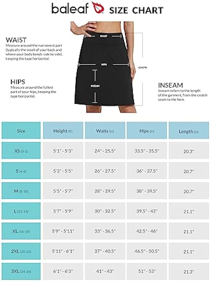 • Skirt Length: 20-21 inches knee length offers more coverage, which is modest & comfort. Build-in Mesh Liner Shorts: 7-inch for enjoy your sports without worries, non see through & non roll & breathable.