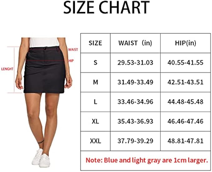 • 【Elegant Golf Skirt】Our Outdoor golf skorts are designed with 2 front pockets and 2 zippered back pockets to secure your things; One of the small zipper pockets in the right big front pocket to hold small essentials like a key, card. Also, built-in non-Slip interior shorts providing safety and security during outdoor activities. A strong metal button with zip fly closure, wide belt loop waistband with elastic side panels provides the right fit. How cute and stylish looks!