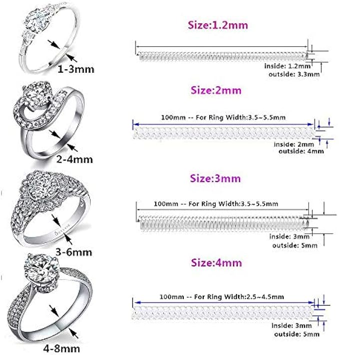 Coopache Ring Size Adjuster for Loose Rings - 2 Styles, 13 Sizes - Jewelry Sizes, Mandrels for Making Jewelry Guards, Spacers, Sizes, Pliers - Spiral Silicone Fastener Set, Silicone, Diamond