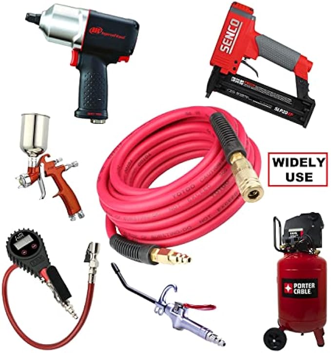 • EXCELLENT MATERIAL: This air hose is blended rubber and PVC air hose is heavy duty, lightweight, flexibility,abrasion resistance and all weather use.