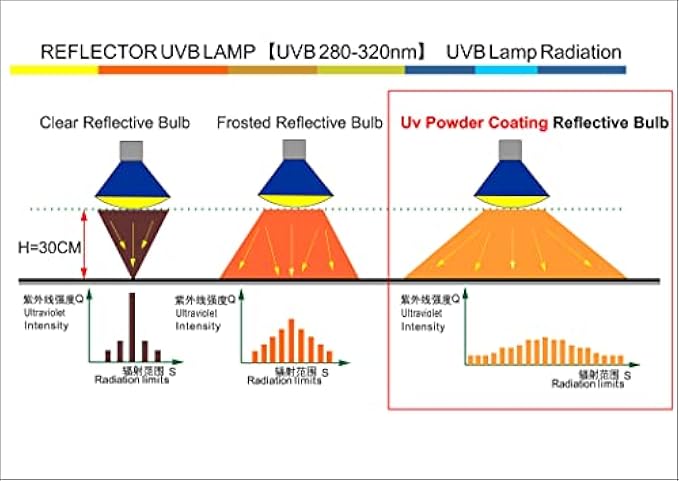 • A FULL SPECTURM LIGHT REPTILE BULB - This reptile light lamp designed with increased UVB penetration distance (+30cm / 12inch), promotes the synthesis of vitamin D3, enhance reptile appetite and stimulate reptile reproduction.