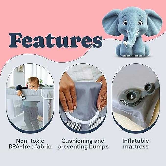 COZY TIME: Our self-inflating 50”×50” mat is perfectly made to fit our 50”×50” non-slippery play pen, made of quick-drying and breathable fabric with a height of 27 inches. Ideal for infants' tummy time and large enough to fit you and the baby.