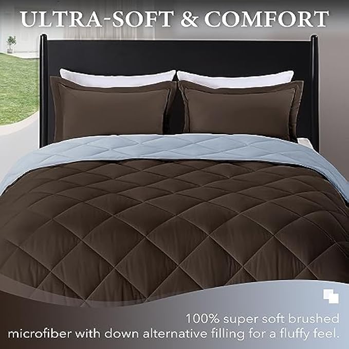 downluxe Queen Comforter Set - Brown and Blue Queen Comforter, Soft Bedding Comforter Sets for All Seasons, Queen Bed Comforter Set - 3 Pieces - 1 Comforter (88"x92") and 2 Pillow Shams(20"x26")