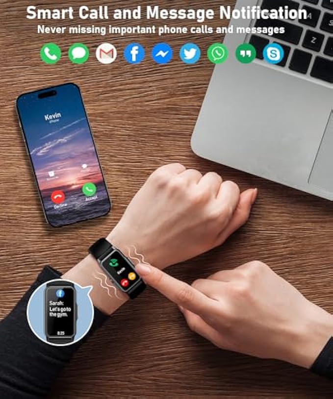 • 【Calls and Messages Notification】Receiving a buzzing notification on your wrist for incoming calls, text and app messages including Facebook,Twitter, WhatsApp, Messenger and more. For inconing calls, you coulld check the caller’s name or phone number on the smart watches for women and men to decide whether you need to reach out for your phone to answer the call or not. For text and app messages, except for a buzzing notification, you could also read the whole messages on your watch directly.