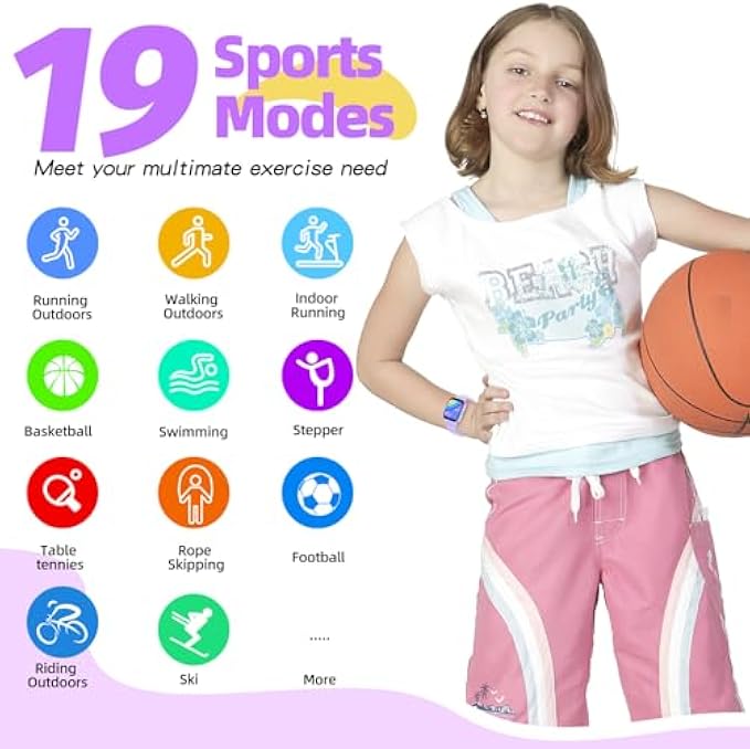 Kids Smart Watch Girls Boys, Fitness Tracker Watch for Kids, 1.5" DIY Dial, 19 Sport Mode, Sleep Monitor, Pedometers, Heart Rate, IP68 Waterproof, Great Gift for Boys Girls Teens 6-14 (Purple)