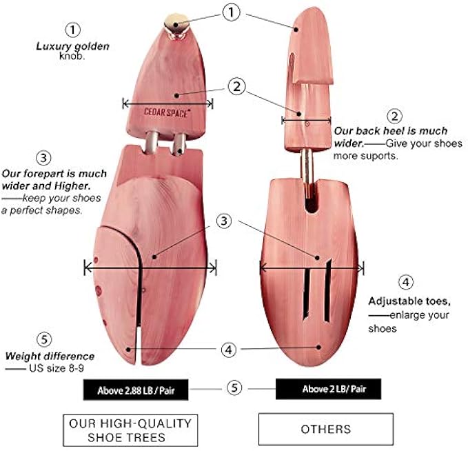 • ★ 100% OF THE HLIGH QUALITY - CEDAR SPACE Cedar Shoe Trees are our proud product, and also the foundation of our company. Each shoe tree is made of Natural Cedar Wood and heart wood. Every year, millions of pairs of our Cedar Shoe Trees are selected by users and used in a variety of shoes they want to protect.