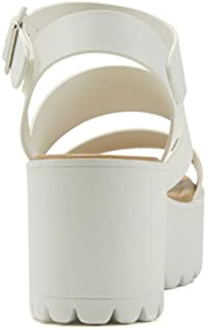 Soda ACCOUNT ~ Women Open Toe Two Bands Lug sole Fashion Block Heel Sandals with Adjustable Ankle Strap