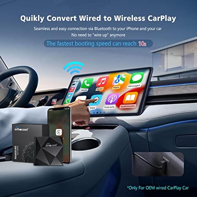 OTTOCAST Wireless CarPlay Adapter 2023 - Fastest Apple CarPlay Wireless Adapter Convert Wired to Wireless, Plug & Play 5Ghz WiFi Auto Connect No Delay Online Update, U2-AIR for OEM Wired CarPlay Cars