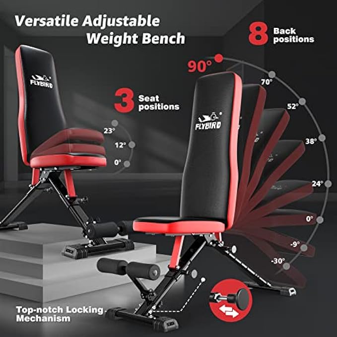 FLYBIRD Workout Bench, Adjustable Weight Bench Foldable Strength Training Bench for Home Gym - Newly Upgraded