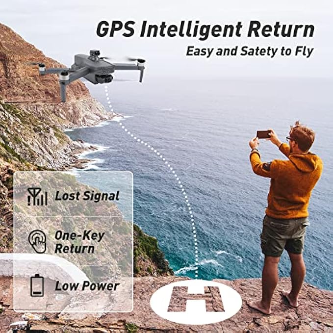 • 【Powerful Brushless Motor】The low noise brushless motors plus the level 6 wind resistance provide you a quieter and stable flight experience.(flying speed of up to 12 m/s) Its ability to hover in one spot without worrying about it moving around makes filming simple and enjoyable as you watch on your phone.