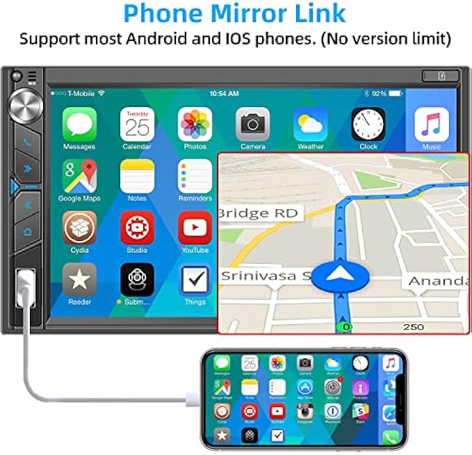 • ✨HD Touch Screen Multimedia Player: Equipped with 7 inch high definition capacitive touch screen and easily reachable physical buttons, USB, TF and AUX port to offer multiple options for music and movie enjoyment in the vehicle. Supporting 1920*1080P video, enhance your visual experience. You can put the mobile phone apps on the high-definition display via the mirror link that you could realize control between your phone and car stereo.