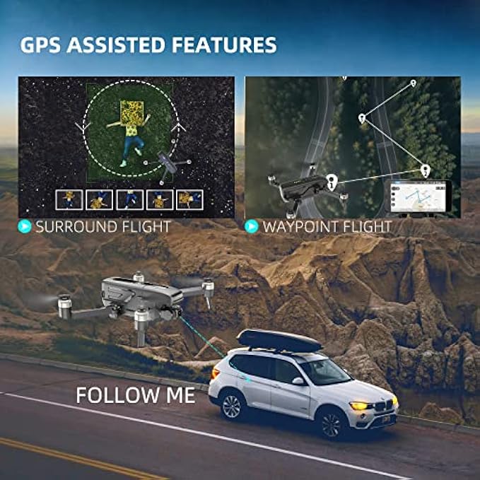 • [Intelligent Flight Features] The intelligent flight modes enable the drone to fly automatically, such as GPS follow me, Waypoint flight, Point of Interest flight, Trajectory Flight, allow you to enjoy the creative fun of free flight. Flight APP also offers more comprehensive fun features, you can share your adventure with just one tap.