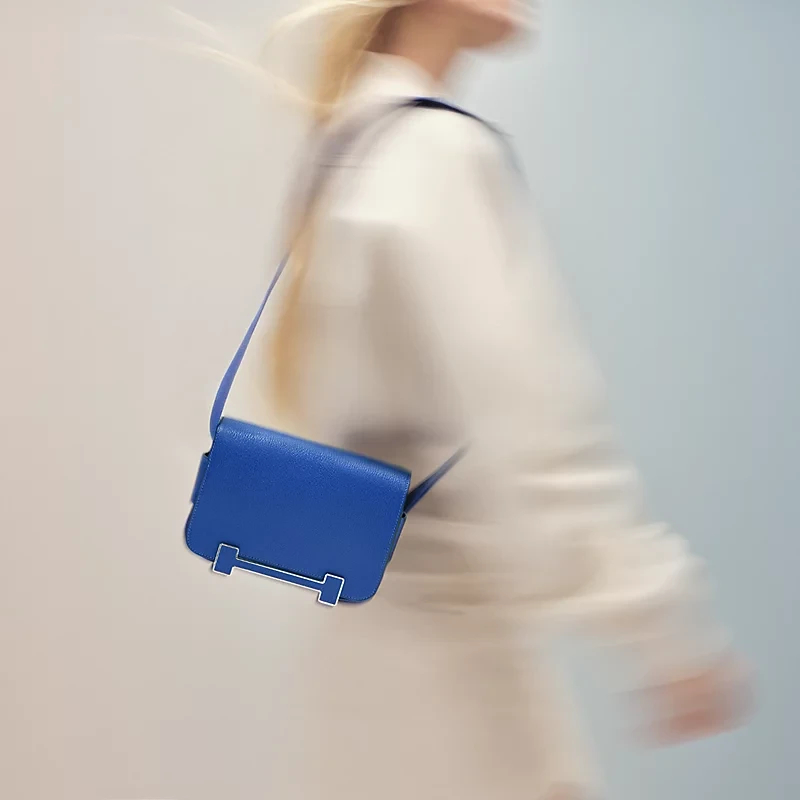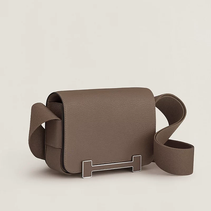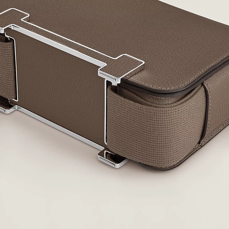 If you return luggage products without reason within seven days of purchase, you will be responsible for the freight and transportation risks incurred by returning the product. You need to confirm and pay the relevant transportation and insurance costs yourself when the shipping company designated by the customer service staff comes to pick up the goods. If you need to choose other logistics for return, Hermès China will not bear the freight and transportation risks incurred by the return. Mysore goatskin shoulder bag. - Palladium-plated 'H' lock with tonal leather inlay - Main compartment - 2 flat interior pockets, 1 with 2 compartments - Adjustable canvas shoulder strap - Can be worn on the shoulder or cross-body The metal pieces serve multiple purposes: magnetic closure, bottom rivets and shoulder strap adjustment system. Made in France. Dimensions: length 20.5 x depth 14 x width 7 cm